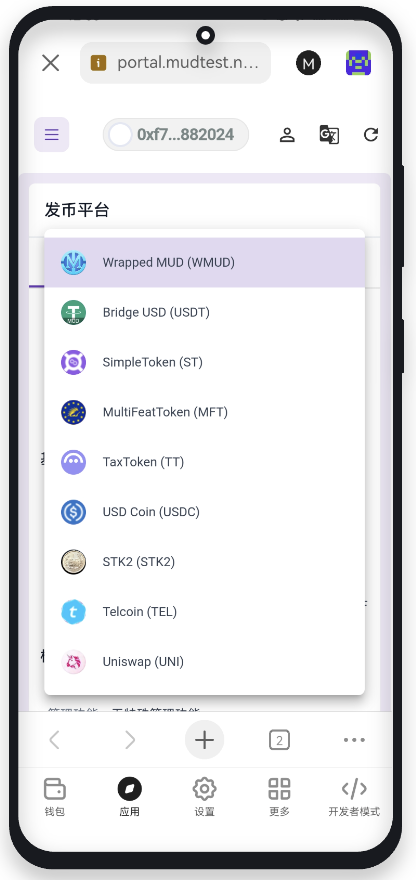 - 在Realm钱包中,找到菜单【应用】, 打开 MUD DEX, 即MUD 去中心化交易所