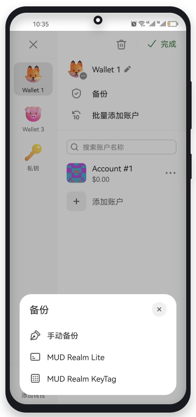 本章节将引导您在 MUD Realm App 中导出钱包账户的公钥或私钥。